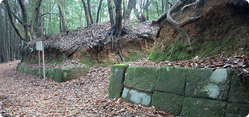 After a crushing defeat at the hands of the combined Chinese Tang and Korean Silla forces at the Battle of Hakusukinoe in Korea in 663, the Imperial Court constructed a number of hill forts throughout Western Japan in preparation for invasion, one of which was Kikuchi Castle. Kikuchi Castle was a support installation intended to provide supplementary weapons and food for the Ono and Kii Castles that protected the Dazaifu government that ruled over Kyushu. Kikuchi Castle is mentioned in a number of historical texts, including the Shoku Nihongi (Chronicle of Japan, Continued), and was named a National Historic Site on February 27th, 2004 as one of a number of important sites in Japan.