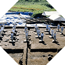 The castle had a perimeter of 3.5km and an area of 55 hectares. Excavations by Kumamoto Prefecture starting in 1967 have discovered a number of valuable architectural remnants—a total of 72 buildings, including an eight-sided tower, a water reservoir, earthen embankment sites, and more—that offer an interesting look into the past.
