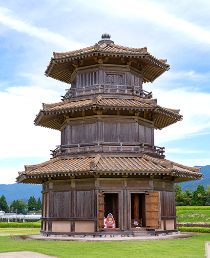 鞠智城のシンボル 八角形鼓楼(はっかくけいころう)