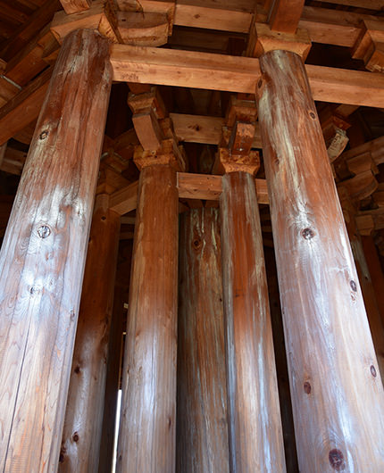 その中の1棟の建物跡を、荷物を保管するための高床の造りであり、防人たちが生活していた「兵舎」の近くにあったことから、武器や武具などを保管するための倉庫として復元し、「板倉」と呼びました。