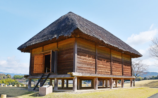 復元した「米倉」は、長さ7.2m、幅9.6mの3間×4間の建物です。湿気を防ぐための高床の校倉造り、ねずみの害を防ぐためのねずみ返しなど、古代の人々のすばらしい知恵を感じてみてはいかがですか。