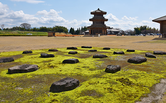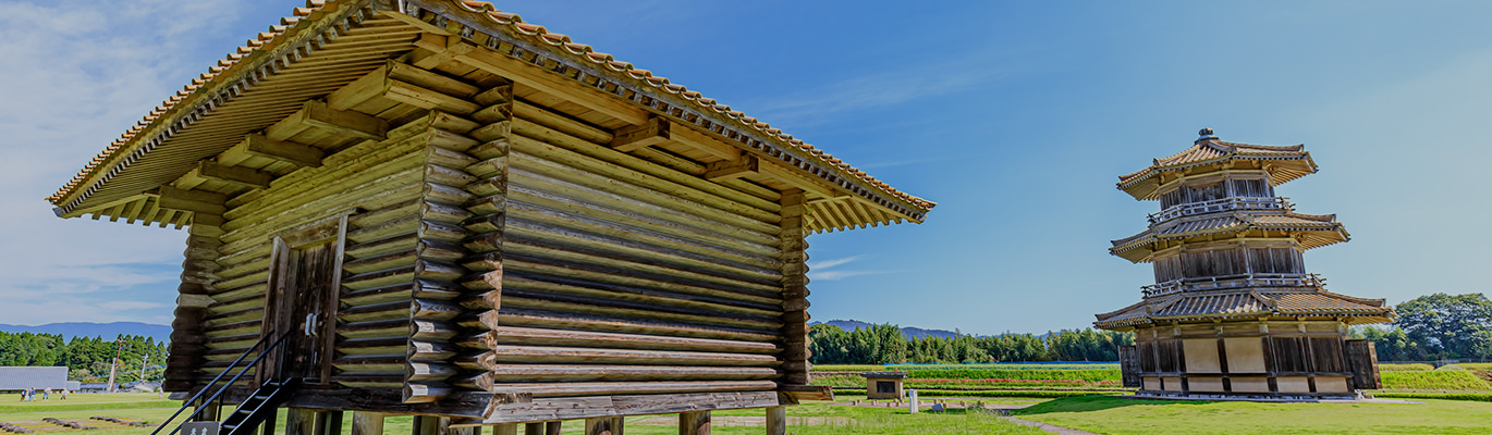 復元した「八角形鼓楼」は、高さ15.8mで、重量約76トンの瓦が載る建物です。一帯に響いた古代の鼓の音、遠く故郷を離れた防人たちの姿を感じてみてはいかがですか。