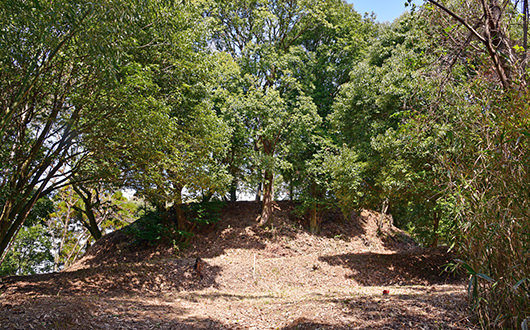 西側土塁上にある高台です。上面は平坦になっており、ここで米原長者(よなばるちょうじゃ)が涼んだ場所という伝承があります。また、涼みヶ御所は「烽見ヶ御所」とも字をあてられ、烽火を見る施設があったのではないかと考えられています。