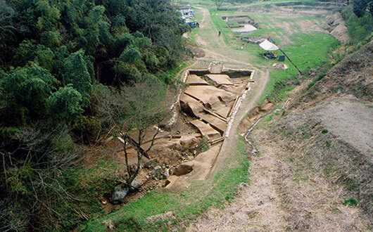 鞠智城からは32次に及ぶ発掘調査で、これまでに国内の古代山城として初めての八角形建物跡や貯水池跡、木簡など貴重な遺構や遺物の発見が相次いでいます。特に、貯水池跡の池尻部から7世紀後半の百済系の銅造菩薩立像が出土し、古代山城の築城に百済の貴族が関わったという『日本書紀』の記述内容を裏付ける考古資料として、鞠智城の学術的価値がさらに高まりました。