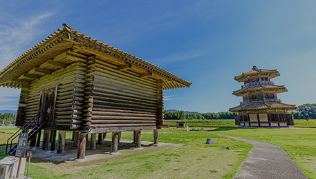 ロ号公園では、弥生時代の「国営吉野ヶ里歴史公園」、古墳時代~飛鳥時代の「国営飛鳥歴史公園」が設置されています。ロ号公園としては、弥生時代では、海外交流を含む西の先進地帯のムラを象徴するmのとして、吉野ケ里遺跡が国営公園として整備されています。